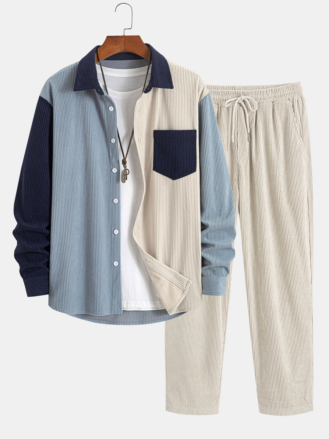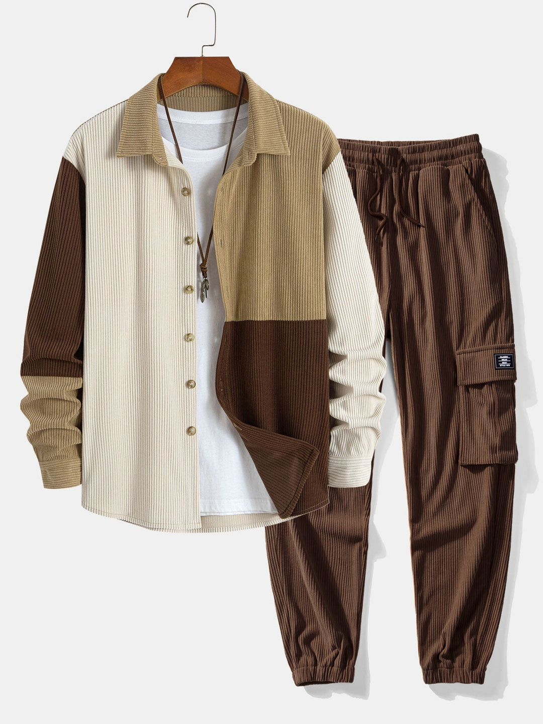 Corduroy Patchwork Shirt & Straight Leg Corduroy Pants
