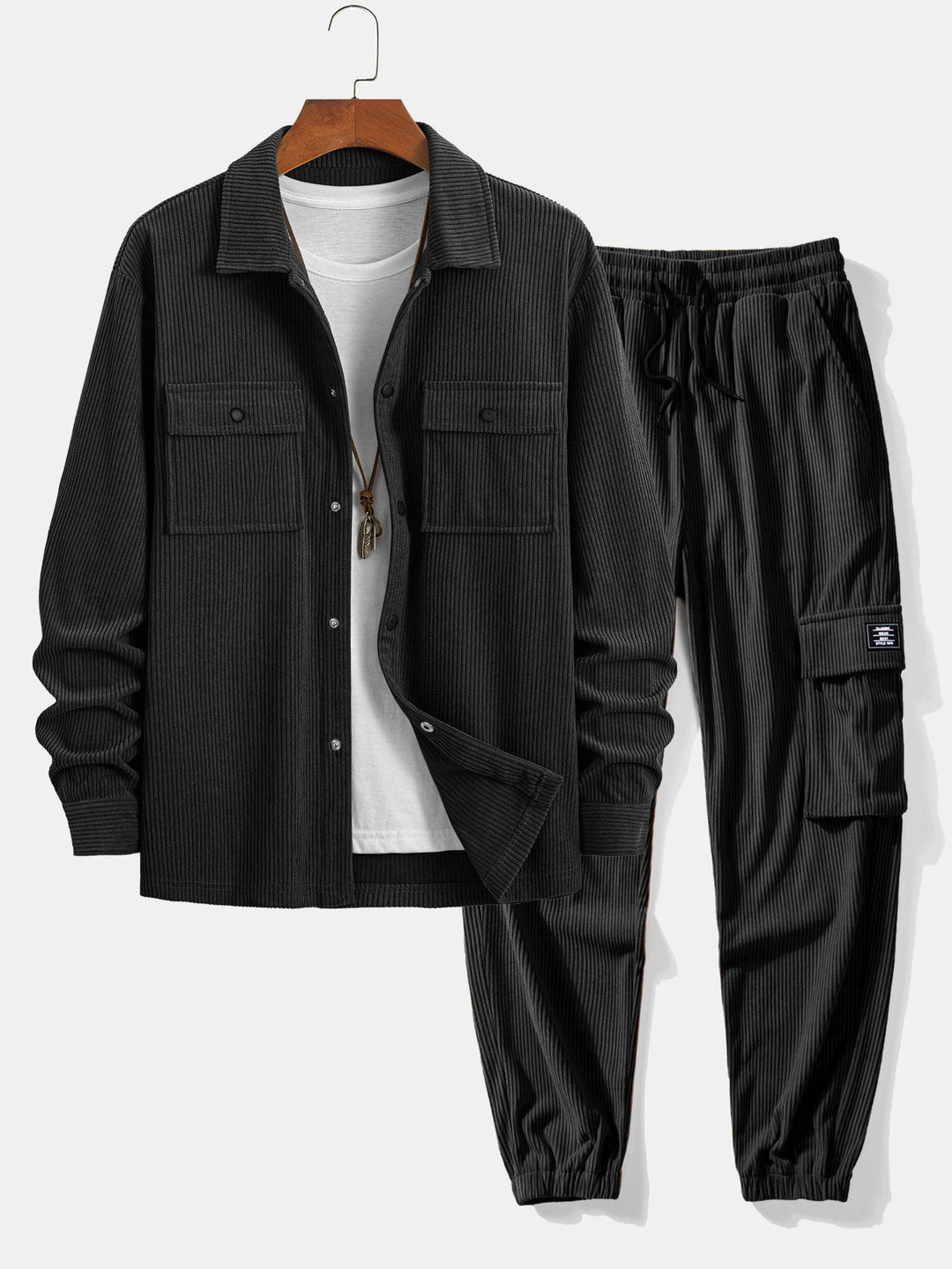 Corduroy Overshirt With Pockets & Drawstring Corduroy Cargo Jogger Pants