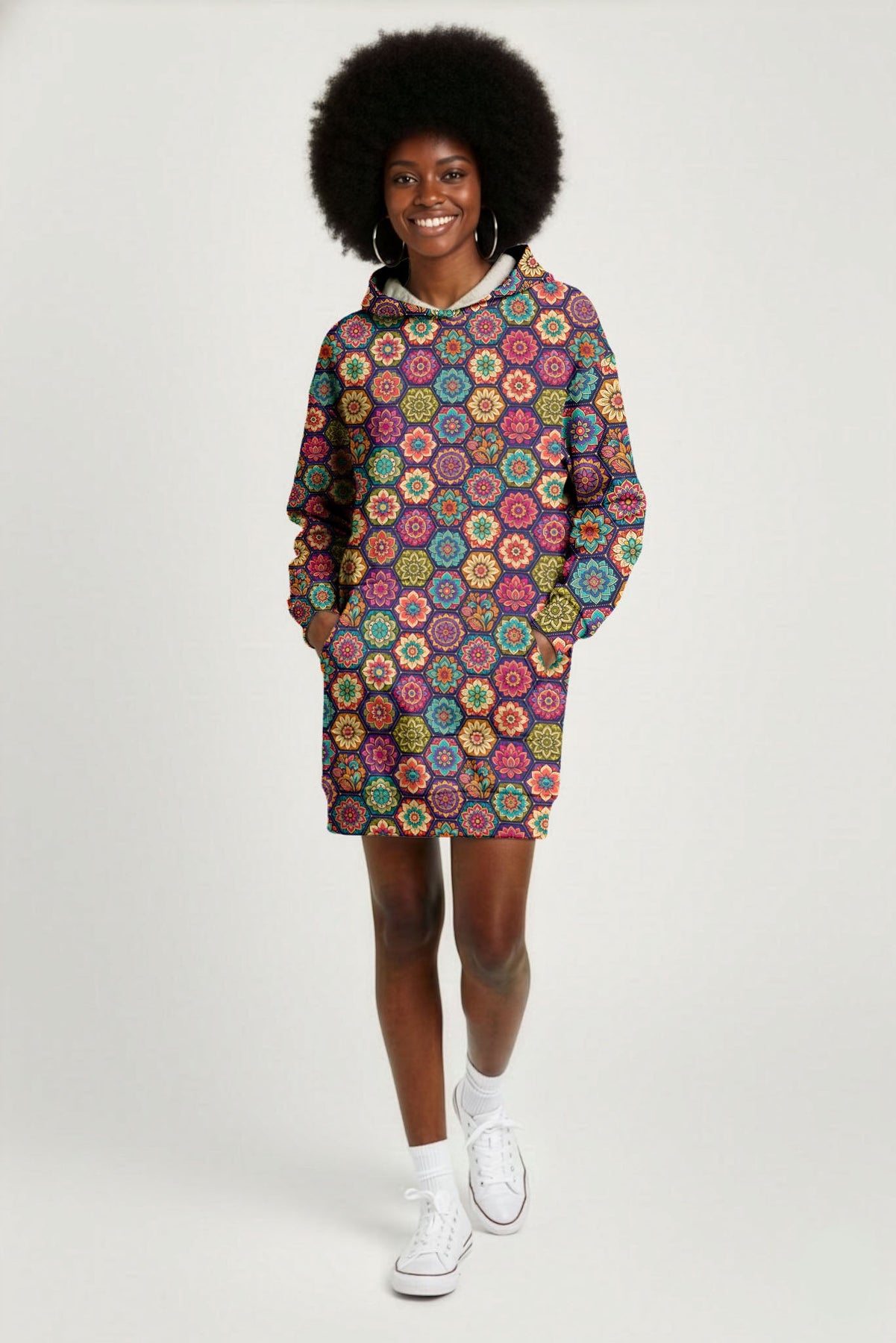 "Flower" is more than a hoodie dress it's a wearable invitation to bloom exactly where you are. Designed for free-spirited women who stay rooted in their truth while reaching toward the sun, its vibrant artwork speaks what your soul already knows: you are growing, radiant, wild, and perfectly unfolding in your own season. Slip into "Flower" as a daily reminder that you don't need permission to take up space because wildflowers never ask, they simply bloom.